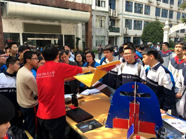 鼓勵在校學生參與招生宣傳。積極發動在校學生參與招生宣傳工作,不斷探索新的模式,從2011年啟動“啟航行動—南航學子中學行”,幾十支團隊,500余名學生走進中學,到現在每年發動“啟航行動—南航學子中學行”、“啟航行動—南航學子歸母校”、“啟航行動—我為母校當伯樂”三大專項活動,全校1500余名學生進入中學開展各項宣傳活動,與學弟學妹們面對面零距離交流大學校園文化,傳授學習方法及心得,培養中學生創新意識,普及三航知識,宣揚航空報國的崇高理念。回訪中學上千所,受眾達上百萬人,活動范圍覆蓋了全國80%的省市。活動深受廣大中學師生的喜愛,受到各方的好評,并被多家中央、地方媒體專題報道。數百名應屆畢業生協助我校招生老師,走進中學,為母校當伯樂,做好招生宣傳工作。