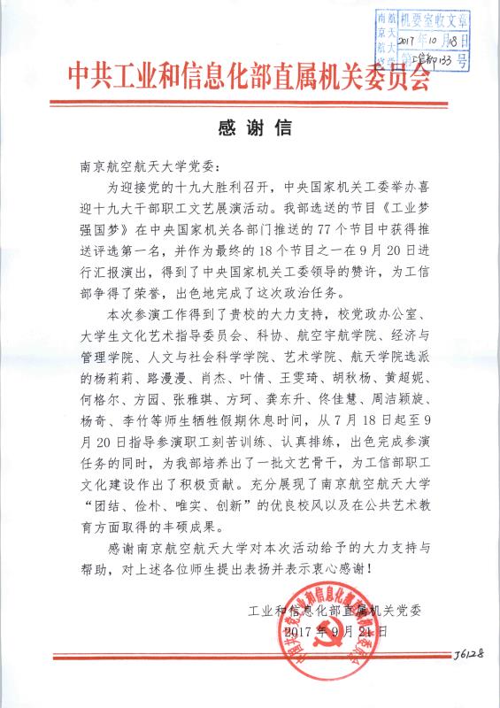 工信部演出感謝信