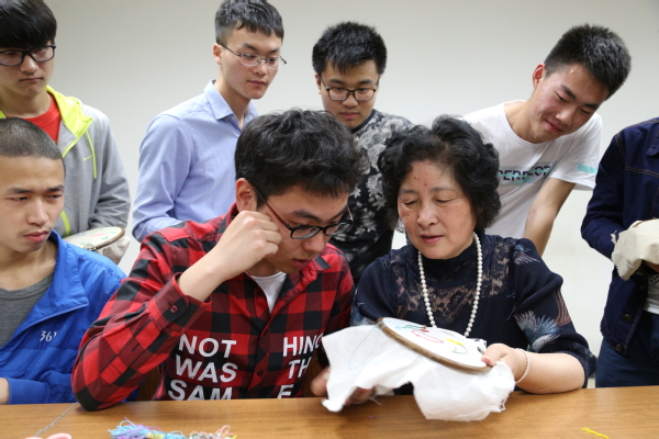 團(tuán)隊(duì)先后聘請(qǐng)了世界級(jí)非物質(zhì)文化遺產(chǎn)“南京剪紙”國家級(jí)代表性傳承人張方林、國家級(jí)非物質(zhì)文化遺產(chǎn)“蘇繡”代表性傳承人趙紅育、“昆曲表演藝術(shù)促進(jìn)獎(jiǎng)”得主、表演藝術(shù)家孔愛萍擔(dān)任我校兼職教授,為全校學(xué)生開設(shè)《剪紙的欣賞與制作》、《刺繡》、《與孔愛萍對(duì)話昆曲閨門旦藝術(shù)》三門公選課,讓理工科學(xué)生在操作實(shí)踐和欣賞表演中感受中華優(yōu)秀文化的魅力。