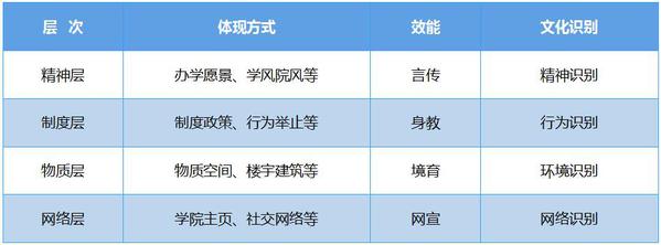 學(xué)院文化傳承創(chuàng)新是學(xué)院的重要職能,學(xué)院文化建設(shè)一般可以分為四個(gè)部分:精神文化、制度文化、物質(zhì)文化和網(wǎng)絡(luò)文化,對應(yīng)上述四個(gè)部分,學(xué)院形象識(shí)別主要分為精神識(shí)別、行為識(shí)別、環(huán)境識(shí)別和網(wǎng)絡(luò)識(shí)別等等,上述內(nèi)容有機(jī)耦合,共同組成了學(xué)院的文化系統(tǒng)。
