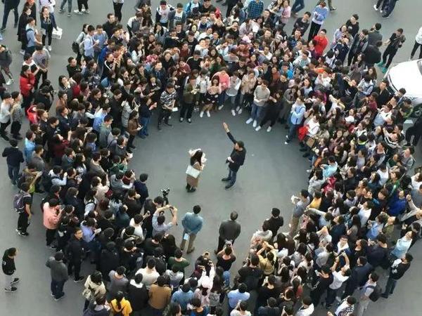 制定方案的過程中也有很多插曲,比如原計劃使用大型無人機帶著氣球從天空旋轉降落在操場求婚,而在測試過程中發現風阻過大,氣球極不穩定。